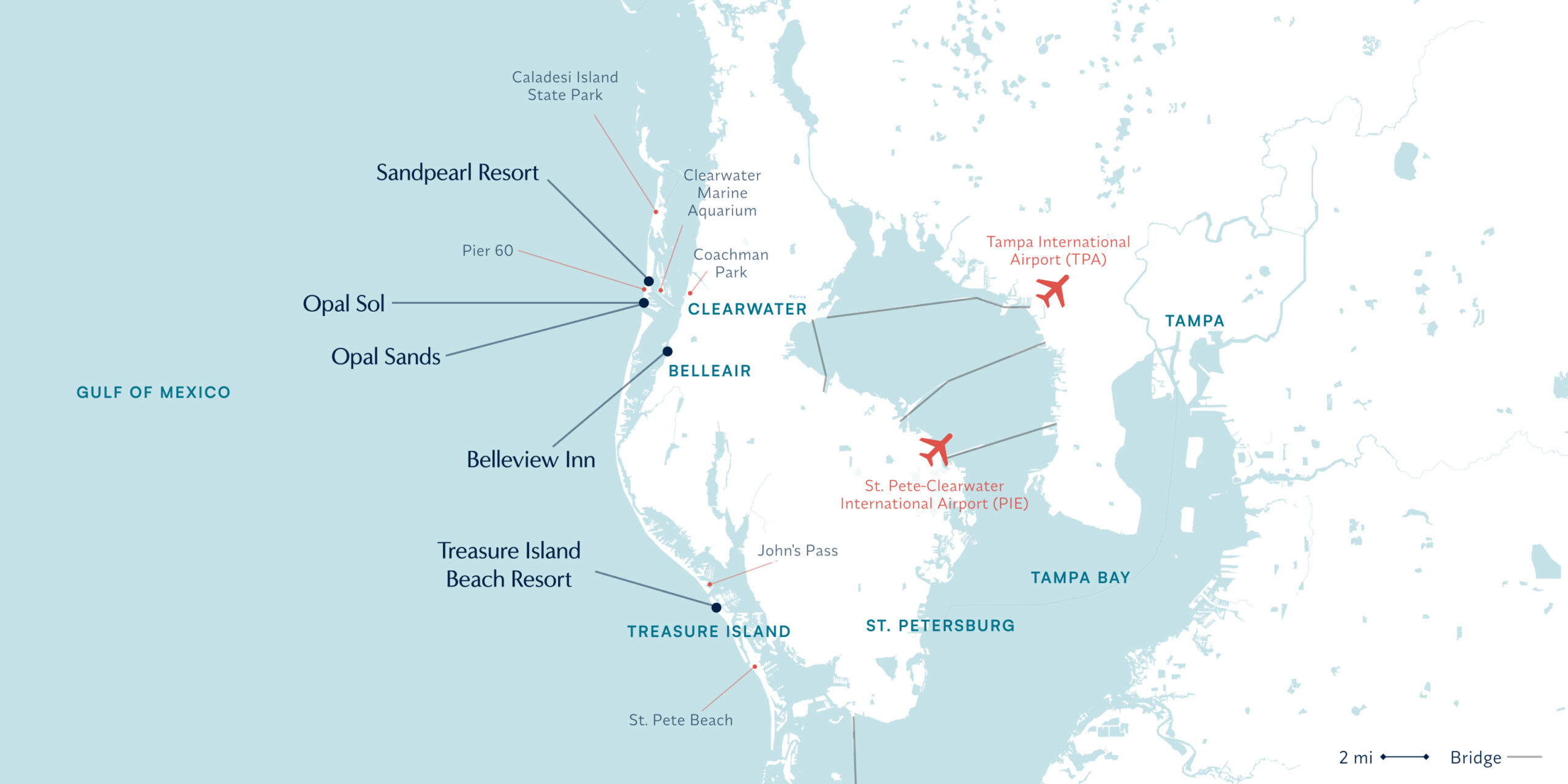 Turquoise Gulf waters and white sands meet under a bright blue Florida sky in Treasure Island